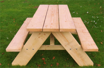 - No fixings/screw holes on top of bench or table top which would normally collect dirt and encourage mildew and rot, also provides a much cleaner finish